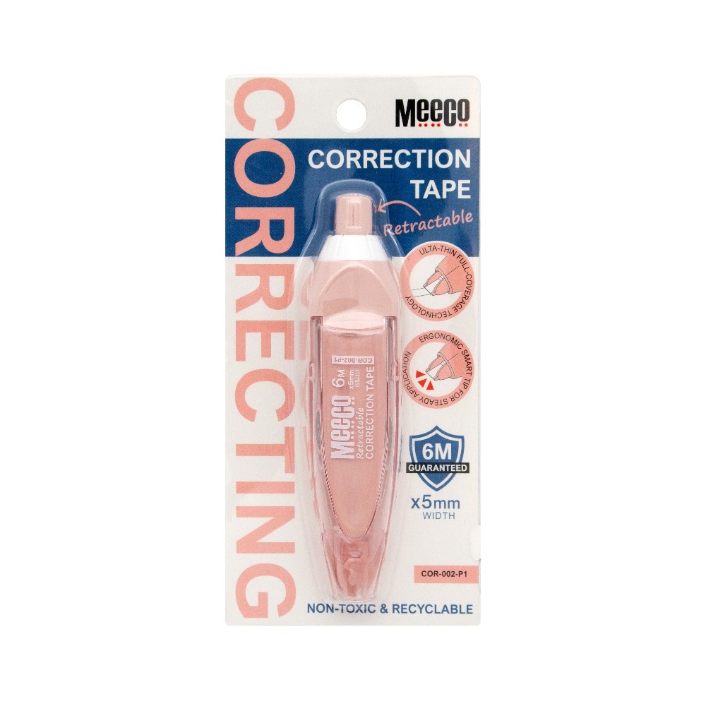 Meeco Retractable Correction Tape 5mmx6Mt RpinkMeeco Retractable Correction Tape 5mmx6Mt Rpink
